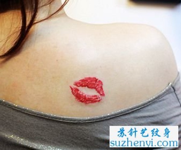 肩部彩色唇印纹身_肩部纹身图案大全_纹身图吧