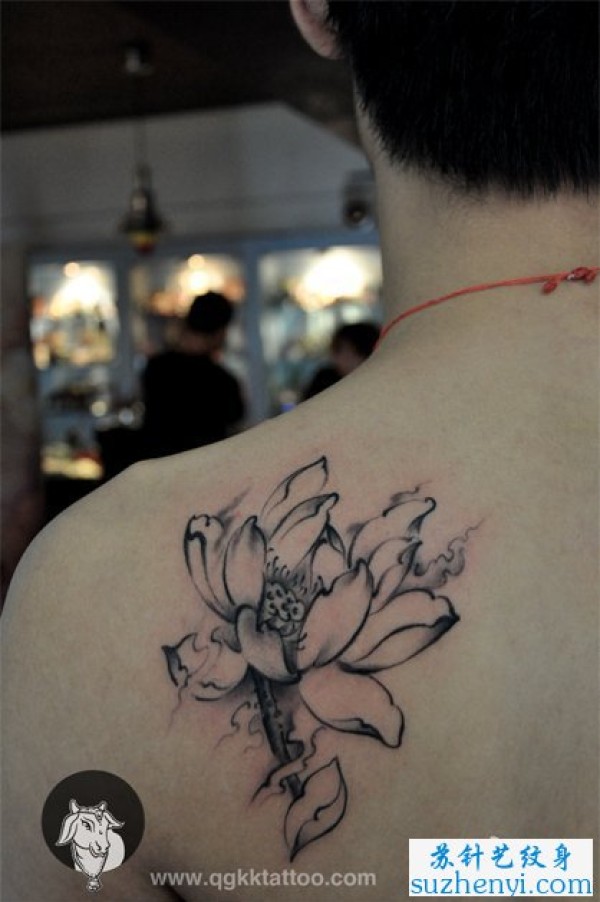 肩部水墨画莲花纹身_肩部纹身图案大全_纹身图吧