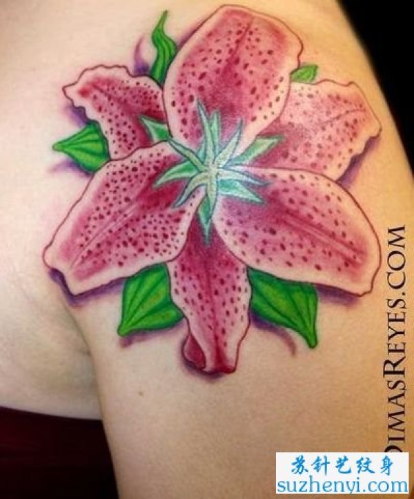 肩部彩色花卉纹身_肩部纹身图案大全_纹身图吧