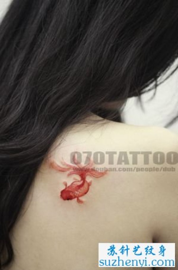 肩部水墨画小金鱼纹身_肩部纹身图案大全_纹身图吧