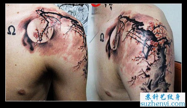 肩膀大臂梅花纹身_肩部纹身图案大全_纹身图吧