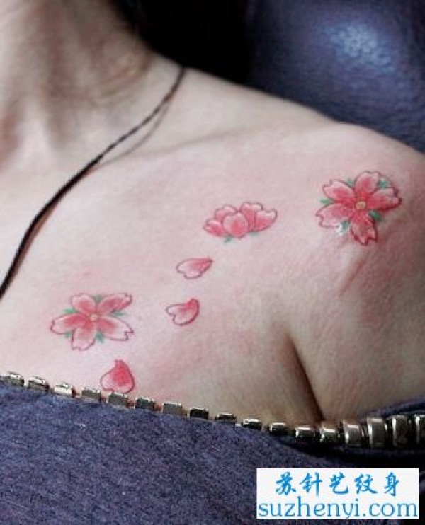 肩胛骨樱花纹身_肩部纹身图案大全_纹身图吧