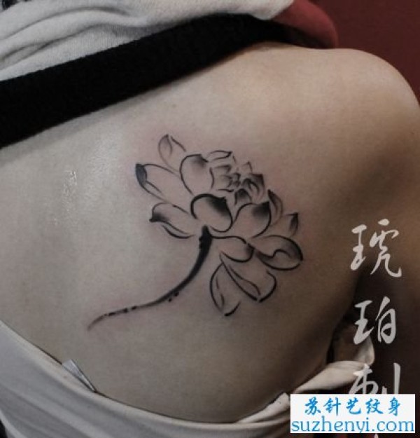肩部流行的水墨画莲花纹身_肩部纹身图案大全_纹身图吧
