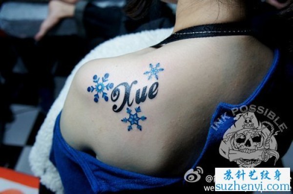 肩背彩色雪花纹身_肩部纹身图案大全_纹身图吧