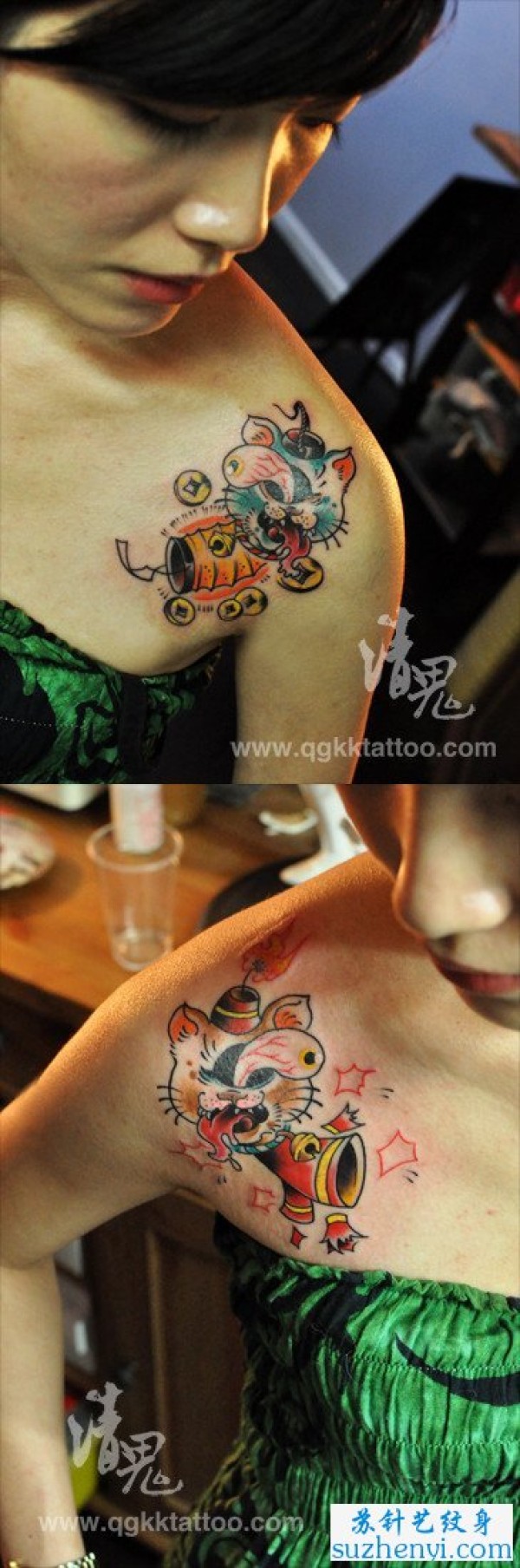 肩膀处猫咪纹身_肩部纹身图案大全_纹身图吧