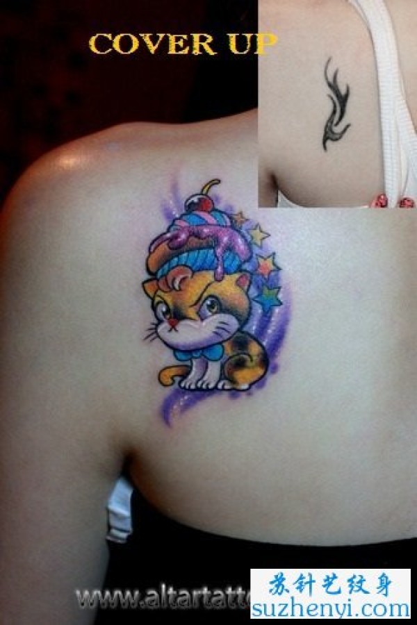 肩背猫咪冰激凌纹身_肩部纹身图案大全_纹身图吧