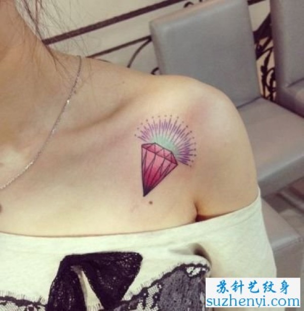 肩膀处彩色小钻石纹身_肩部纹身图案大全_纹身图吧