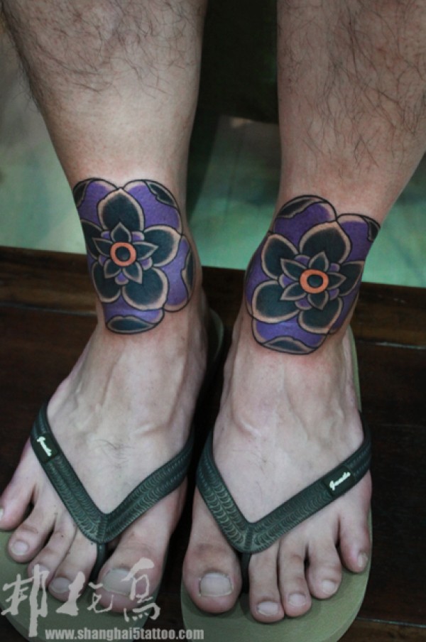 脚腕双花_脚部纹身图案大全_纹身图吧
