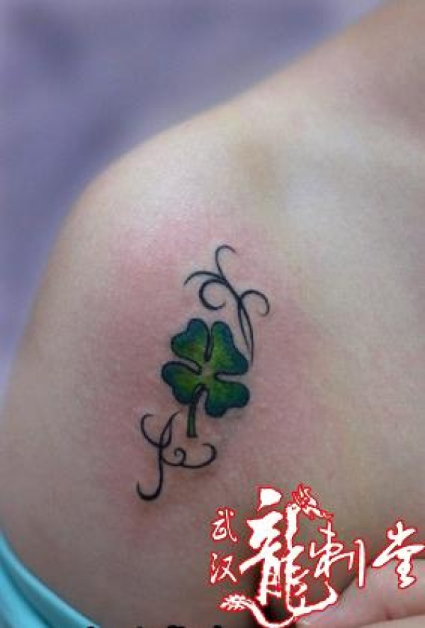 肩部四叶草纹身_肩部纹身图案大全_纹身图吧