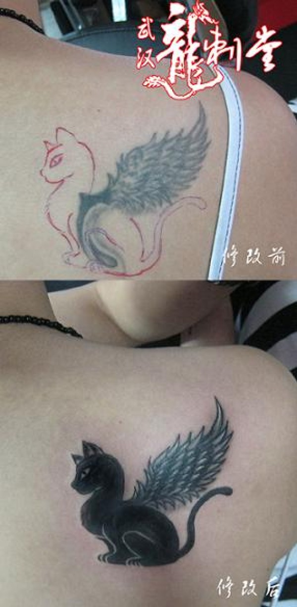 修改美女肩部纹身 黑猫纹身_肩部纹身图案大全_纹身图吧