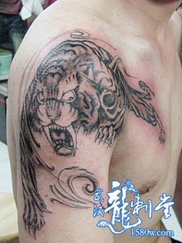 老虎纹身过肩虎纹身武汉纹身_肩部纹身图案大全_纹身图吧
