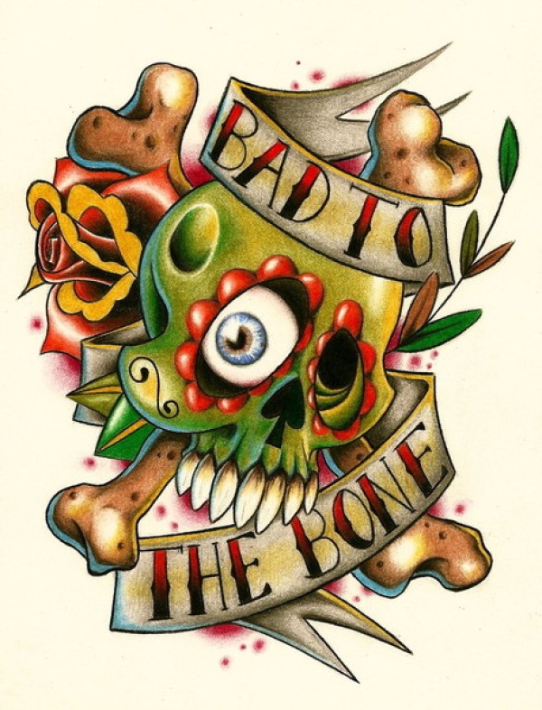 啃着骨头的骷髅头纹身_骷髅纹身图案大全_纹身图吧