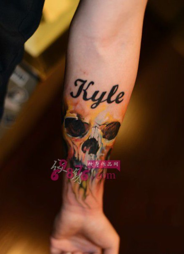 炫彩骷髅创意手臂纹身_骷髅纹身图案大全_纹身图吧