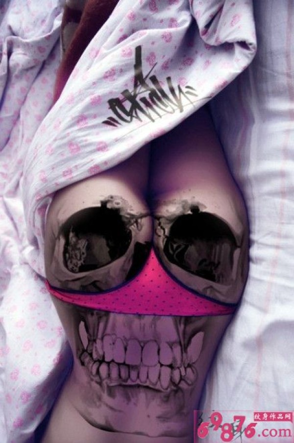 臀部个性骷髅头纹身_骷髅纹身图案大全_纹身图吧