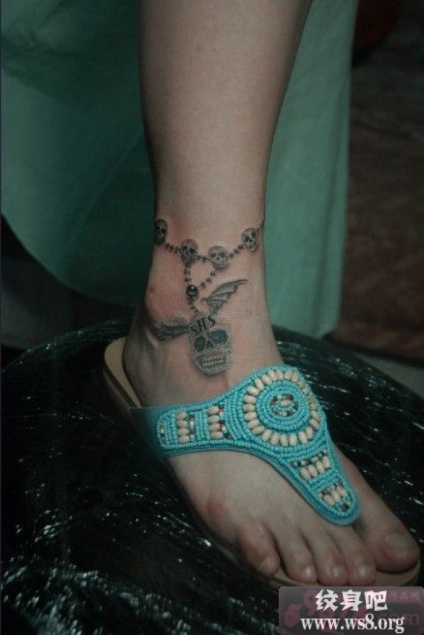 时尚骷髅脚链纹身图案_骷髅纹身图案大全_纹身图吧