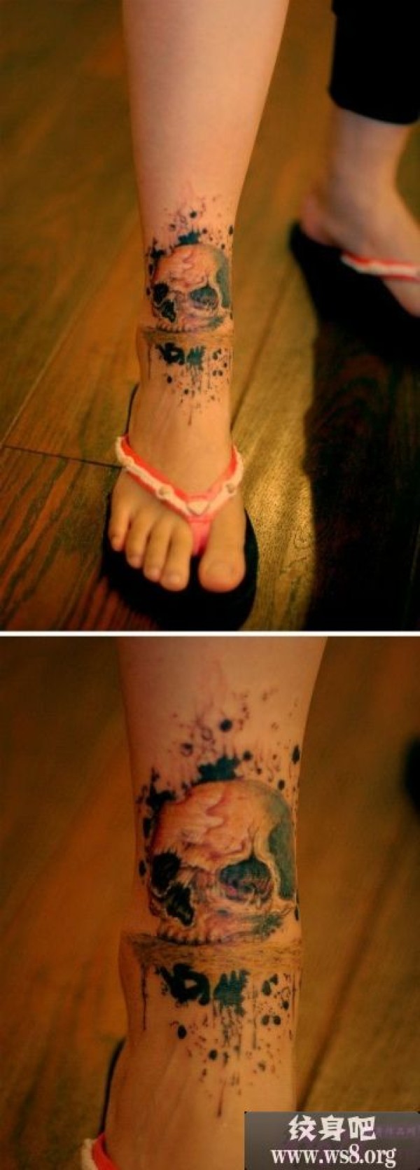 创意水墨骷髅脚踝纹身图案_骷髅纹身图案大全_纹身图吧
