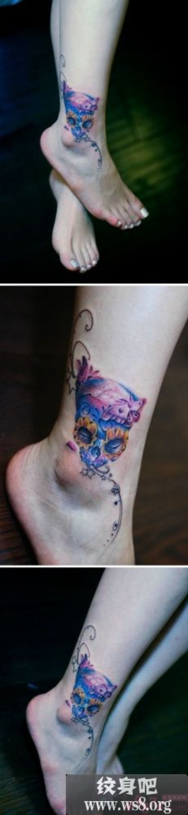 创意太阳花骷髅脚踝纹身图案_骷髅纹身图案大全_纹身图吧