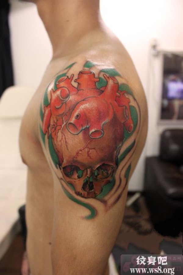 创意骷髅心脏手臂纹身图案_骷髅纹身图案大全_纹身图吧
