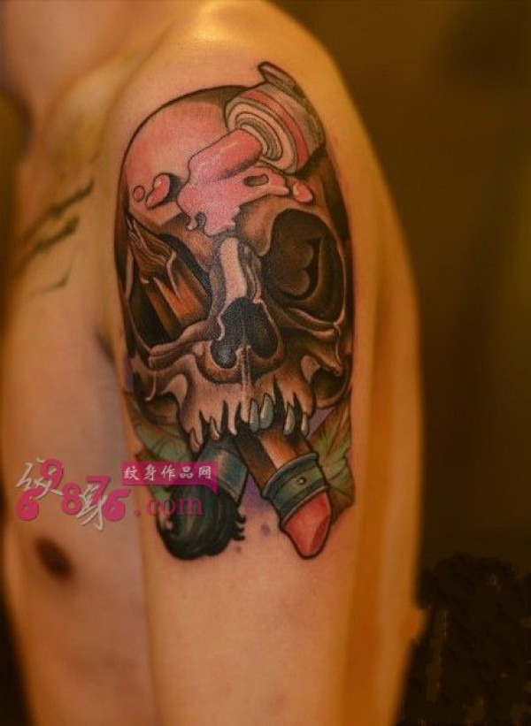 肩部五芒星骷髅纹身_骷髅纹身图案大全_纹身图吧