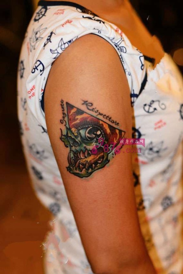 欧美风骷髅三角眼手臂纹身_骷髅纹身图案大全_纹身图吧