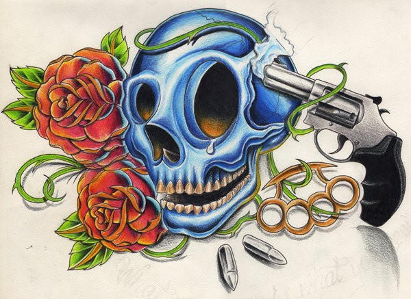 被枪击的骷髅头刺青_骷髅纹身图案大全_纹身图吧