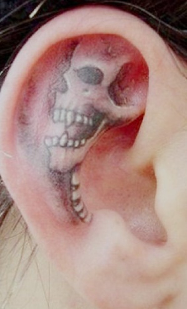 耳朵骷髅头纹身图案图片_骷髅纹身图案大全_纹身图吧