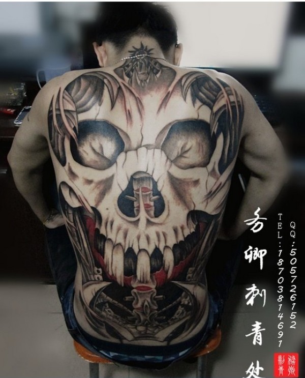 满背超大霸气骷髅_骷髅纹身图案大全_纹身图吧