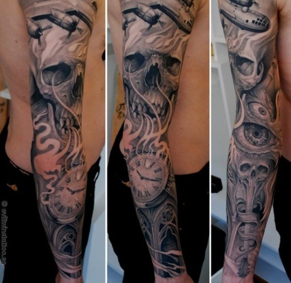 骷髅手表花臂_骷髅纹身图案大全_纹身图吧