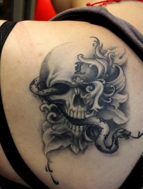 肩部五芒星骷髅纹身_骷髅纹身图案大全_纹身图吧