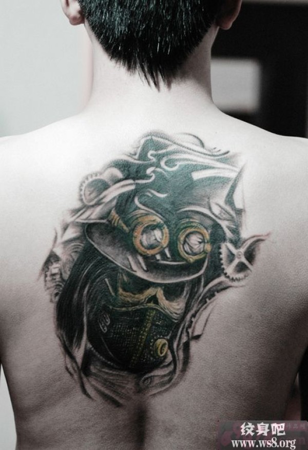 满背欧美写实骷髅纹身_骷髅纹身图案大全_纹身图吧