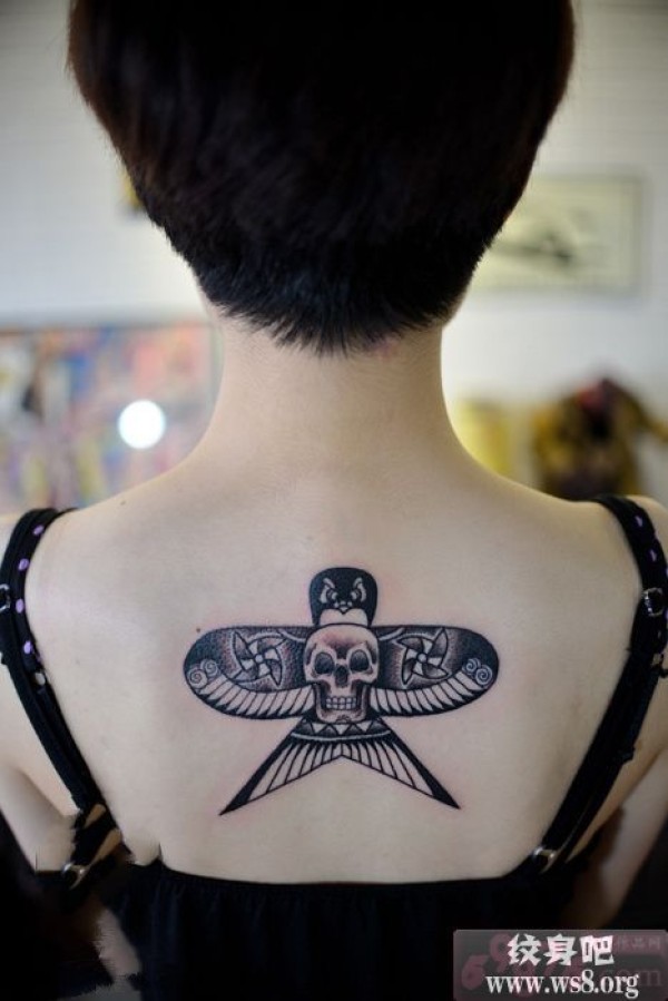 背部骷髅翅膀纹身_骷髅纹身图案大全_纹身图吧