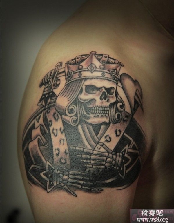 骷髅老K男人大臂纹身图案_骷髅纹身图案大全_纹身图吧