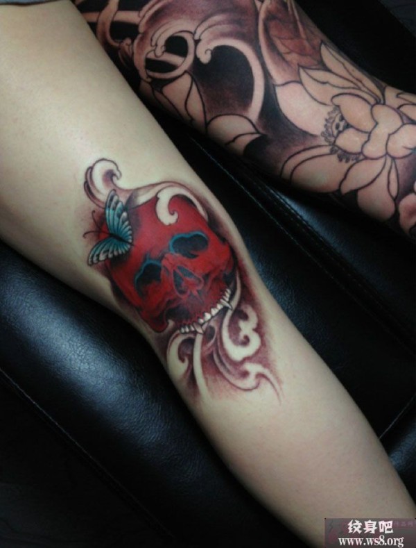 创意红色骷髅手臂纹身图案_骷髅纹身图案大全_纹身图吧