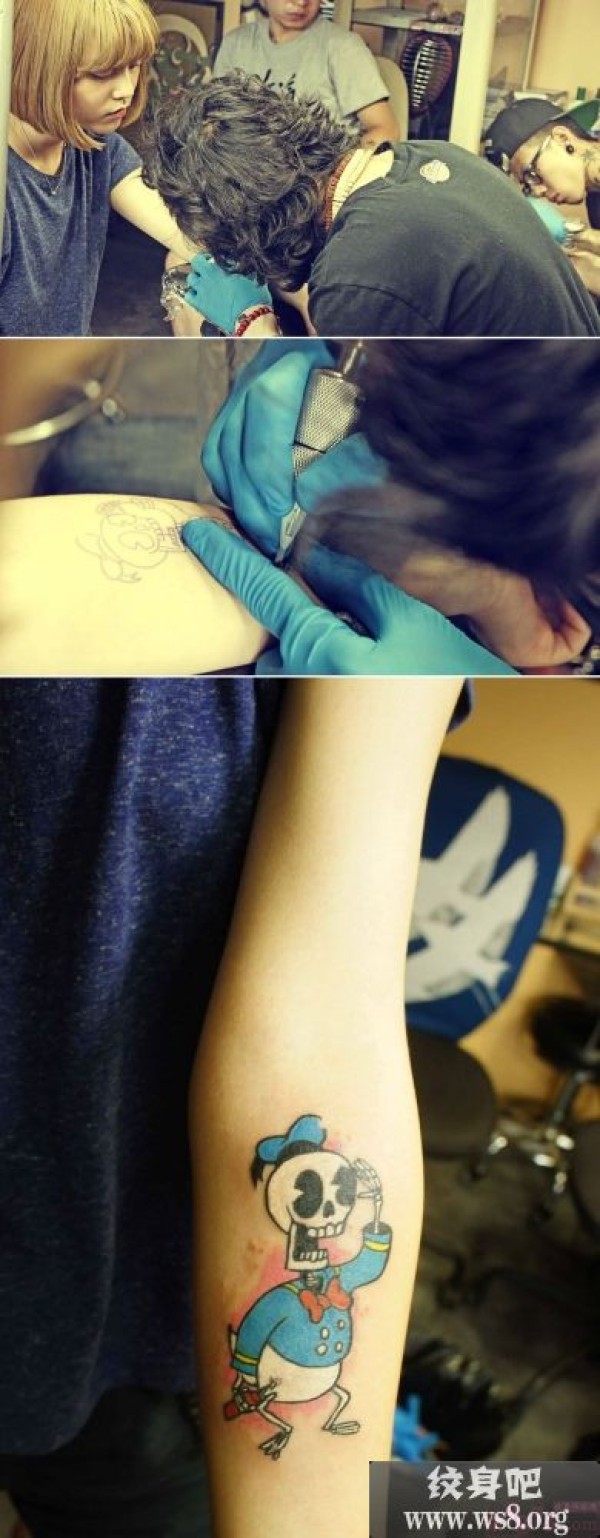 个性骷髅唐老鸭刺青现场图案_骷髅纹身图案大全_纹身图吧
