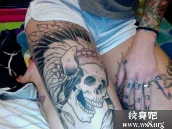大腿上个性夸张骷髅纹身图案_骷髅纹身图案大全_纹身图吧