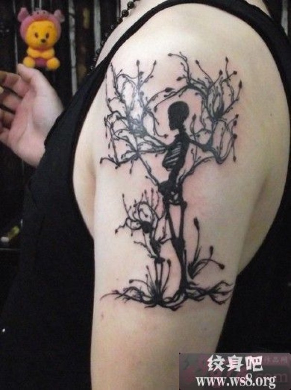 手臂个性骷髅树纹身图案图案_骷髅纹身图案大全_纹身图吧