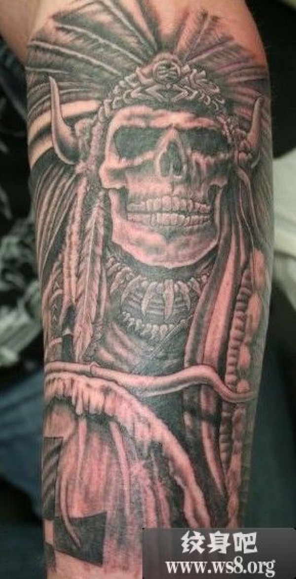 复古部落印第安骷髅头图案_骷髅纹身图案大全_纹身图吧