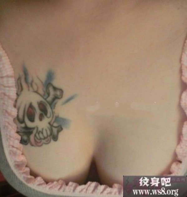 迷人胸部个性骷髅纹身图案_骷髅纹身图案大全_纹身图吧