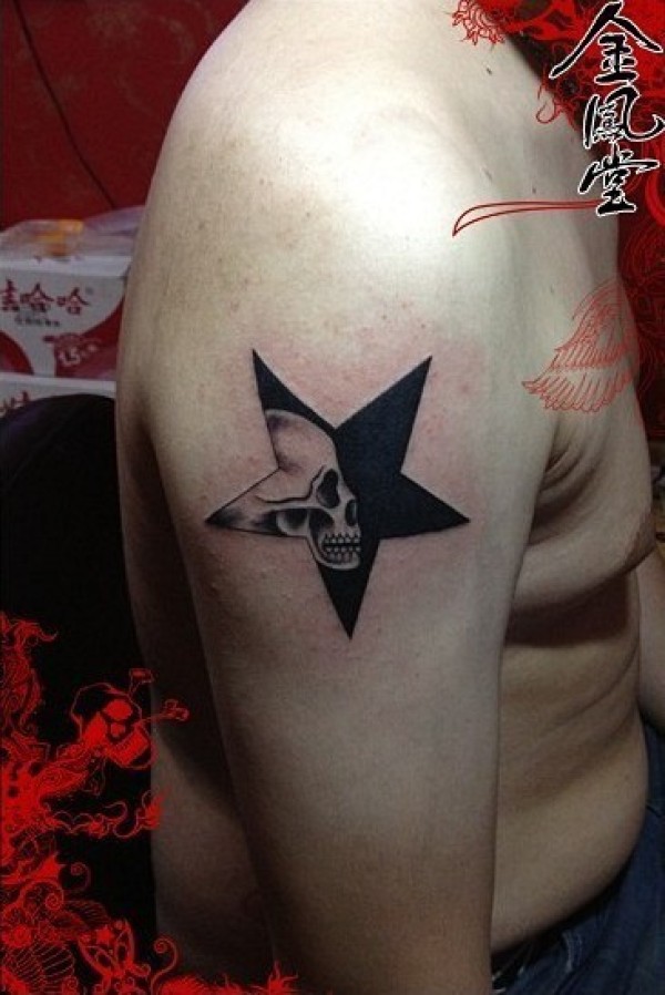 右肩上五角星中间的骷髅图案_骷髅纹身图案大全_纹身图吧