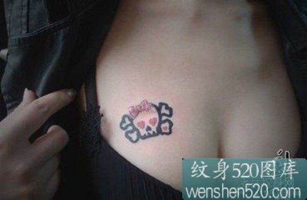 女生胸部可爱的骷髅头纹身图案_骷髅纹身图案大全_纹身图吧