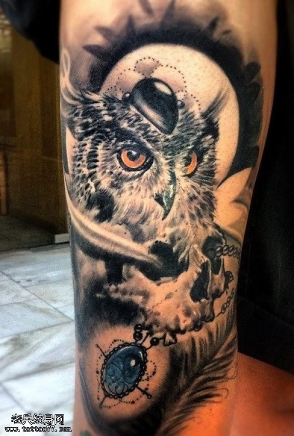 腿部猫头鹰骷髅钻石纹身图案_骷髅纹身图案大全_纹身图吧