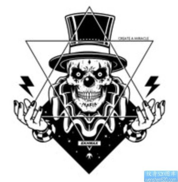 一款骷髅小丑纹身图案_骷髅纹身图案大全_纹身图吧