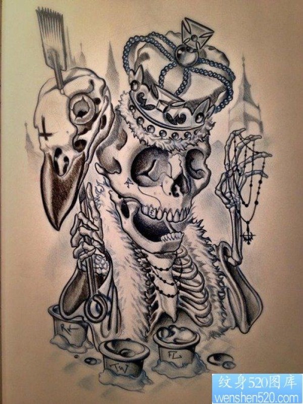 一款骷髅皇冠纹身图案_骷髅纹身图案大全_纹身图吧