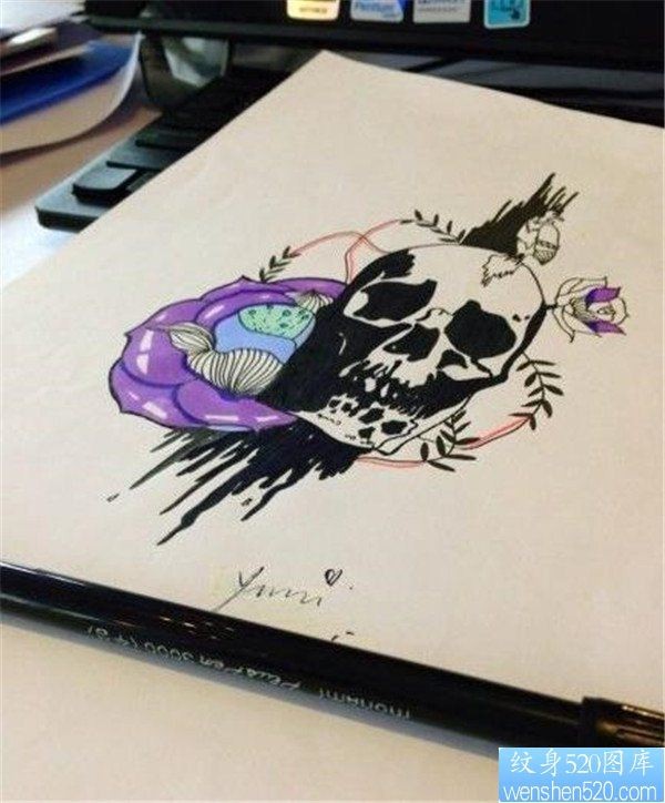 泼墨风格骷髅纹身图案_骷髅纹身图案大全_纹身图吧