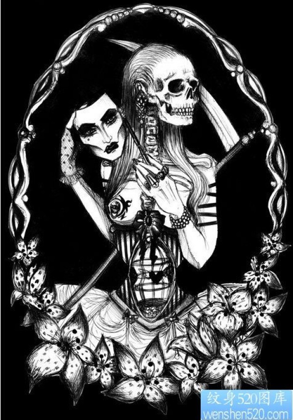 一张骷髅结婚的纹身图案_骷髅纹身图案大全_纹身图吧