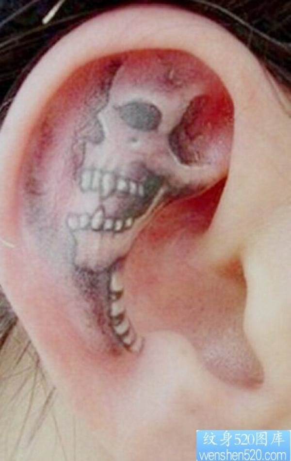 一款耳朵骷髅纹身图案_骷髅纹身图案大全_纹身图吧