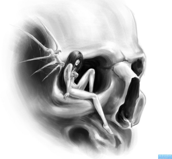 背部骷髅美女纹身_骷髅纹身图案大全_纹身图吧