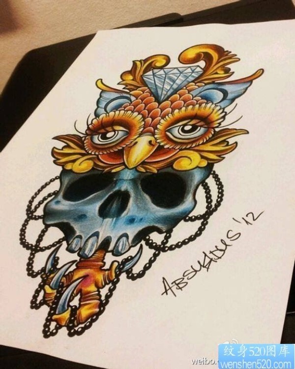欧美猫头鹰骷髅头纹身图案_骷髅纹身图案大全_纹身图吧