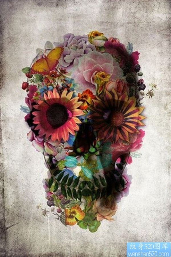 手臂骷髅菊花纹身_骷髅纹身图案大全_纹身图吧