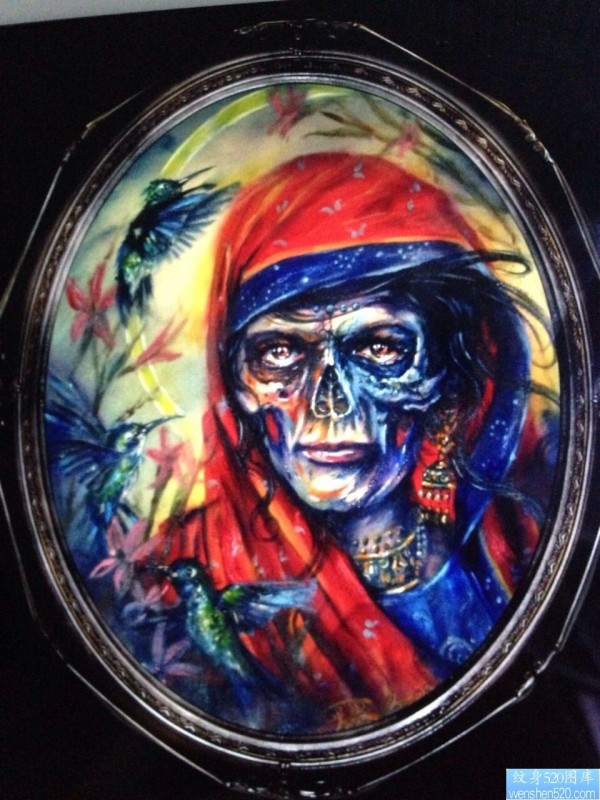 一张彩色的骷髅人纹身图案_骷髅纹身图案大全_纹身图吧